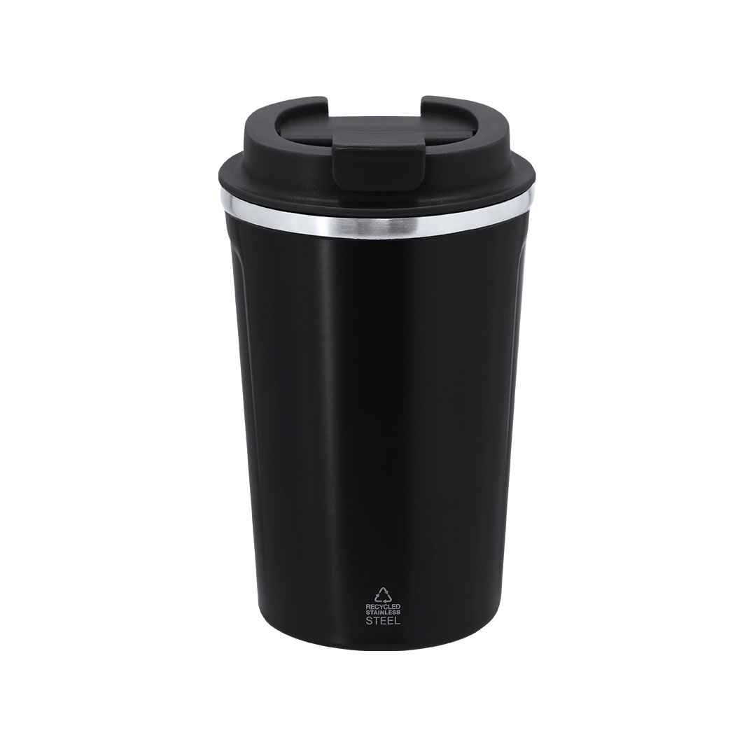 VASO: Vaso térmico de doble pared fabricado en Acero Inox Recliclado y 400 ml de capacidad. Tapadera con dosificador de fácil apertura de PP y libre de BPA. Incluye distintivo de Acero Inox Reciclado.