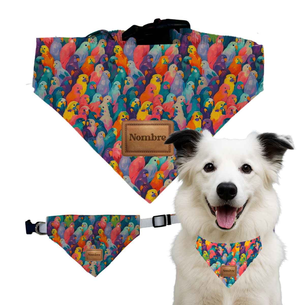 ✅ Pañuelo con collar incluido, súper cómodo y con un diseño lleno de buena vibra para que tu perro luzca genial además... ¡¡Personalizado con su nombre!!